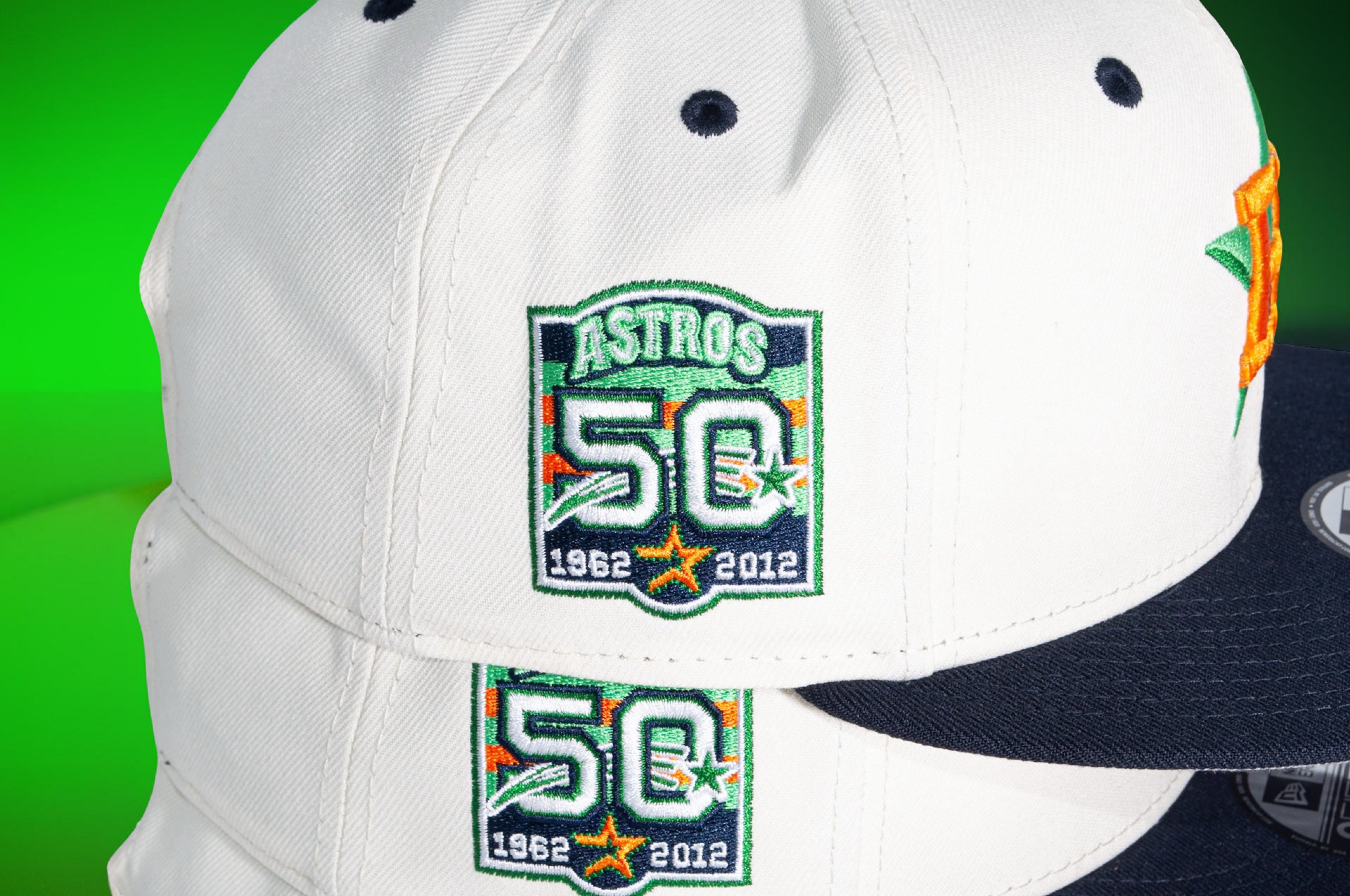 On the left panel, the iconic Astros 50th Anniversary Side Patch (1962–2012) pays homage to five decades of baseball in Houston. But the real show-stealer?