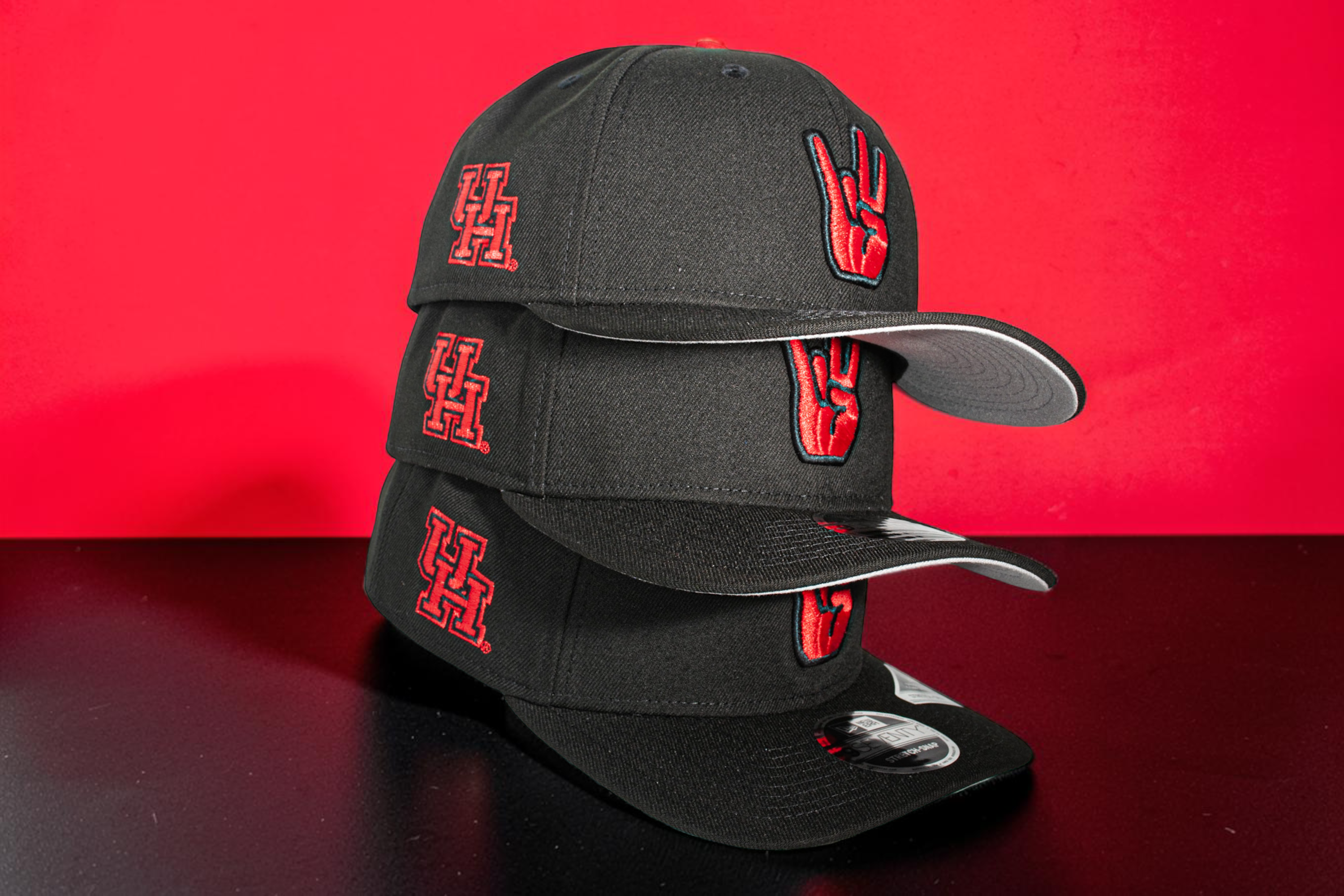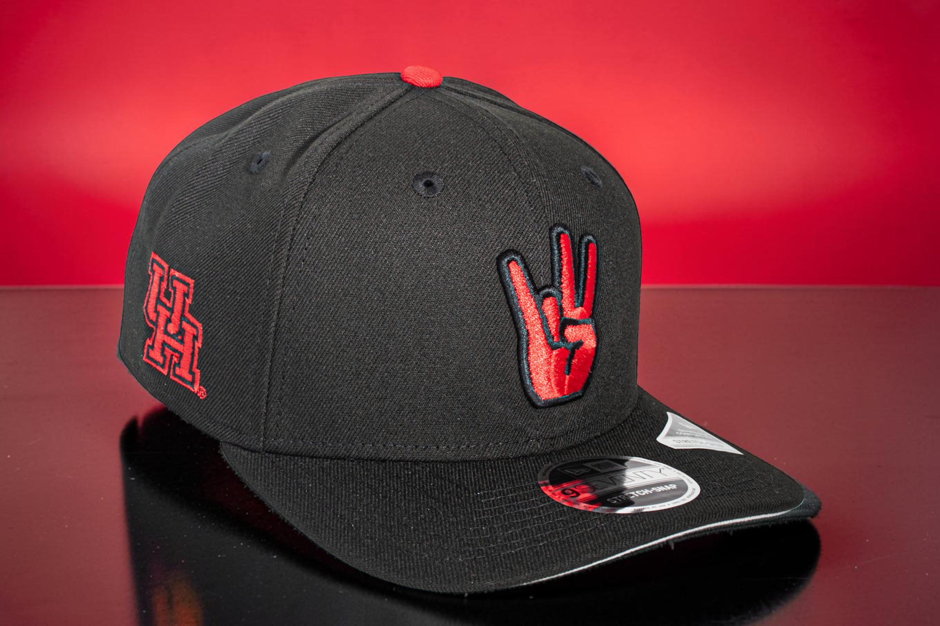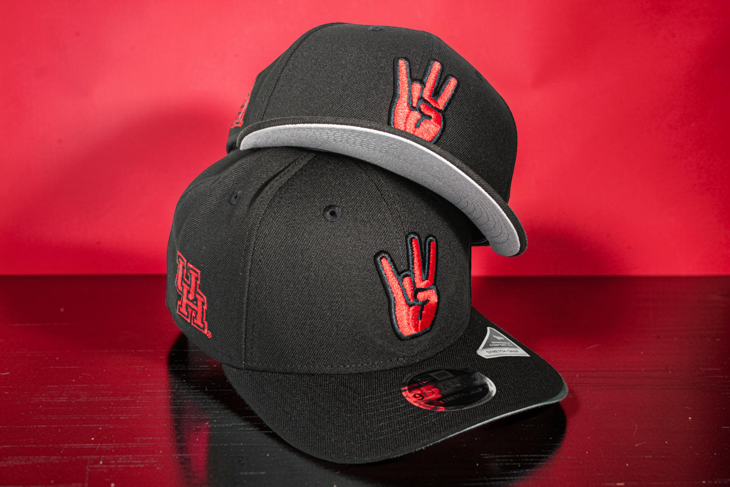 Eight One presents U of H Cougar Paw Bred 970 Stretch Snap. This snap rocks the local favorite Bred Color (Black & Red) and the iconic red and white school colors as its accents. The iconic Cougar Paw is embroidered on the crown and the classic interlocking U of H logo sits proudly on the side. It comes complete with a grey undervisor.