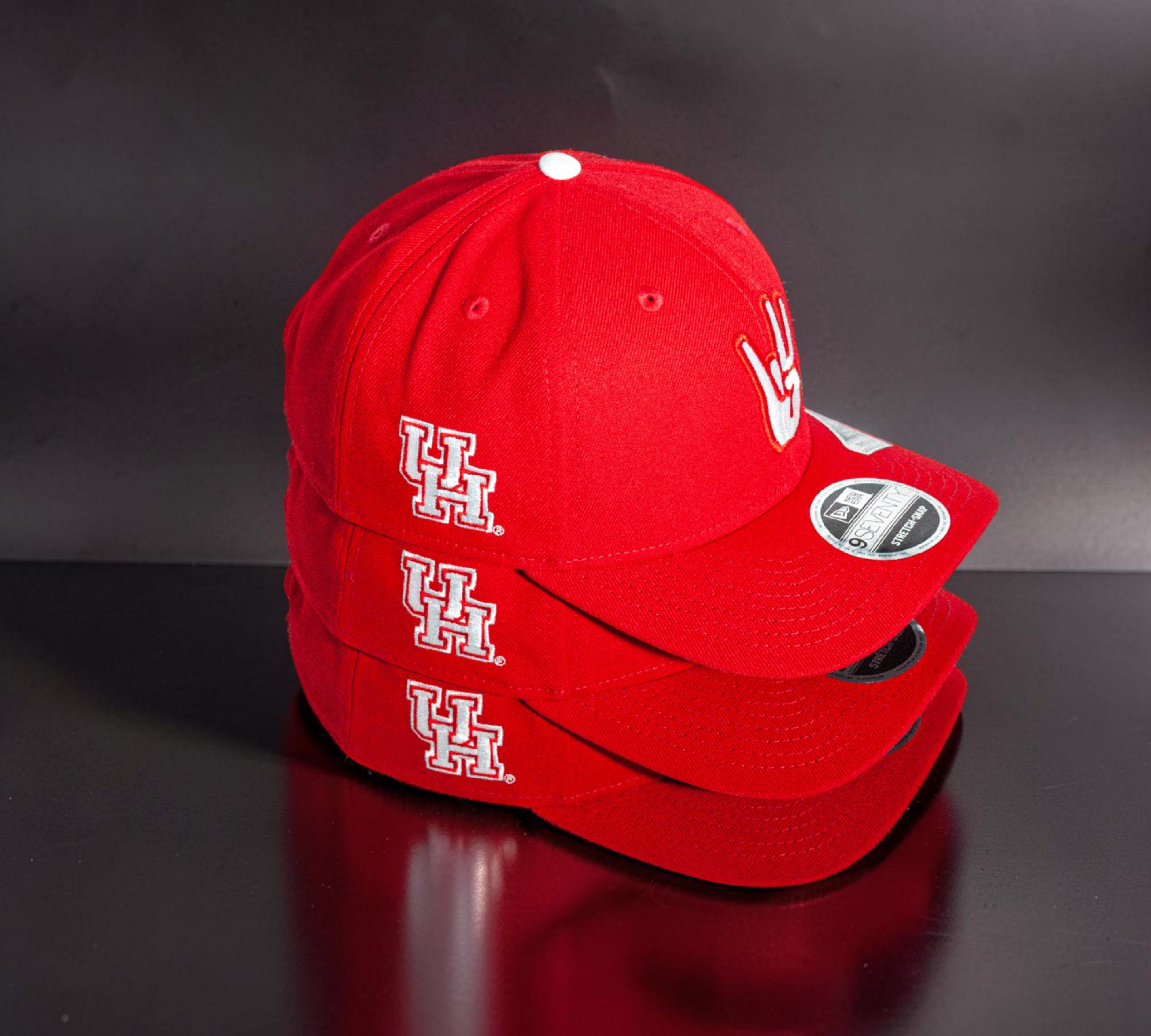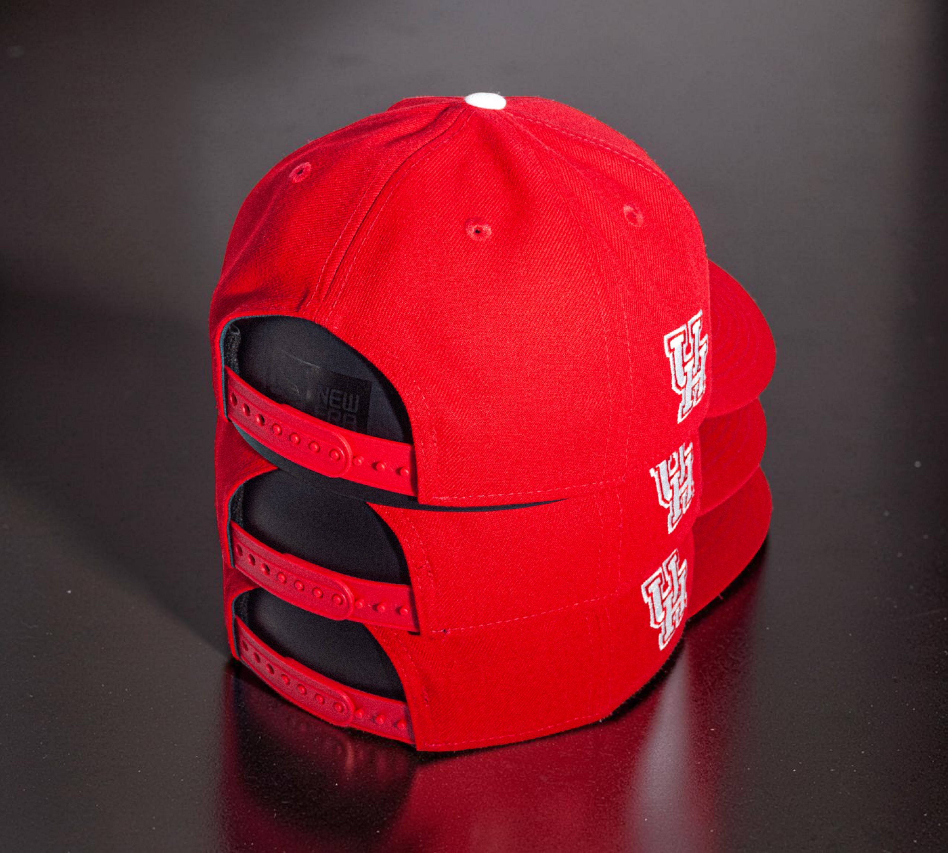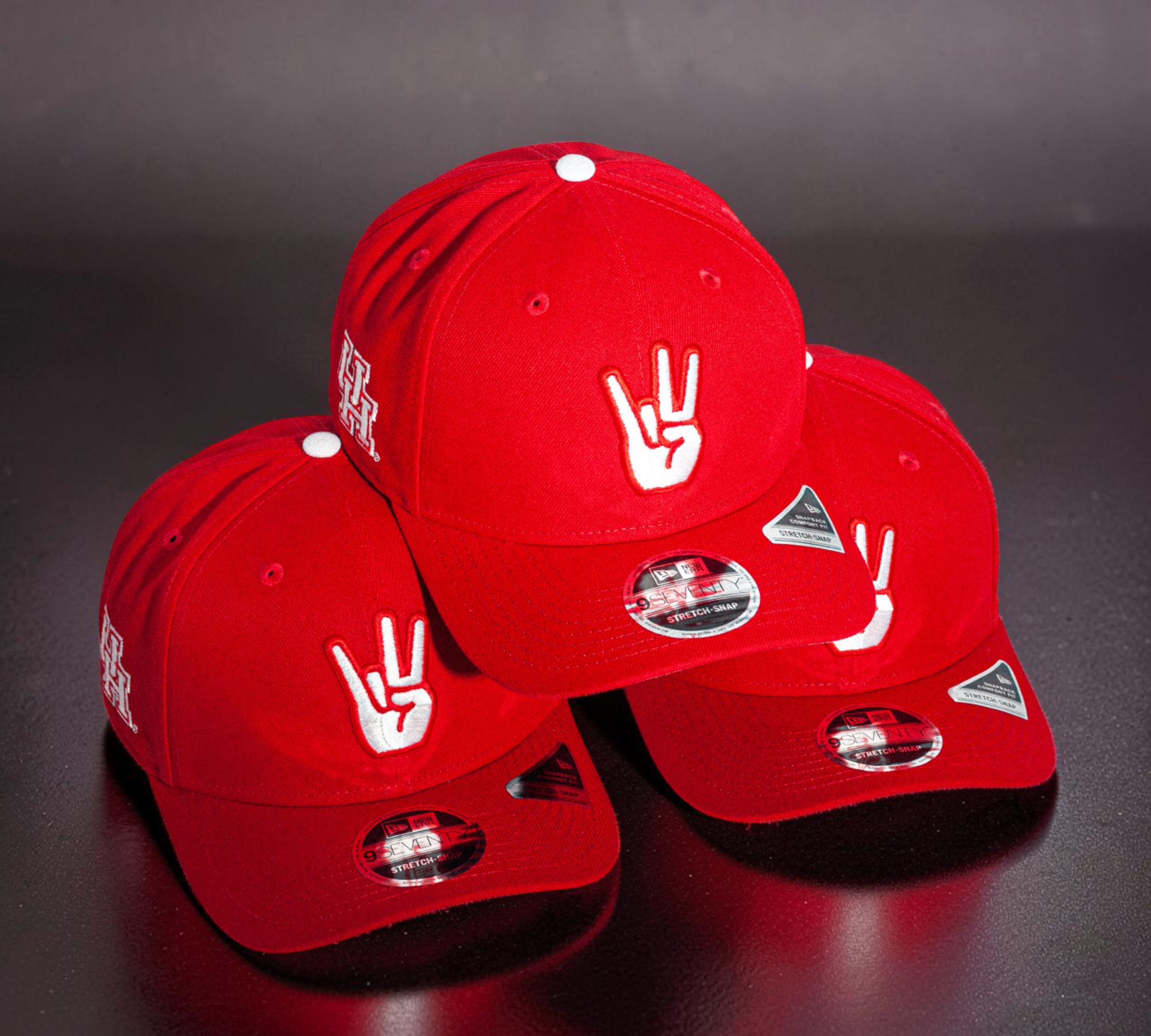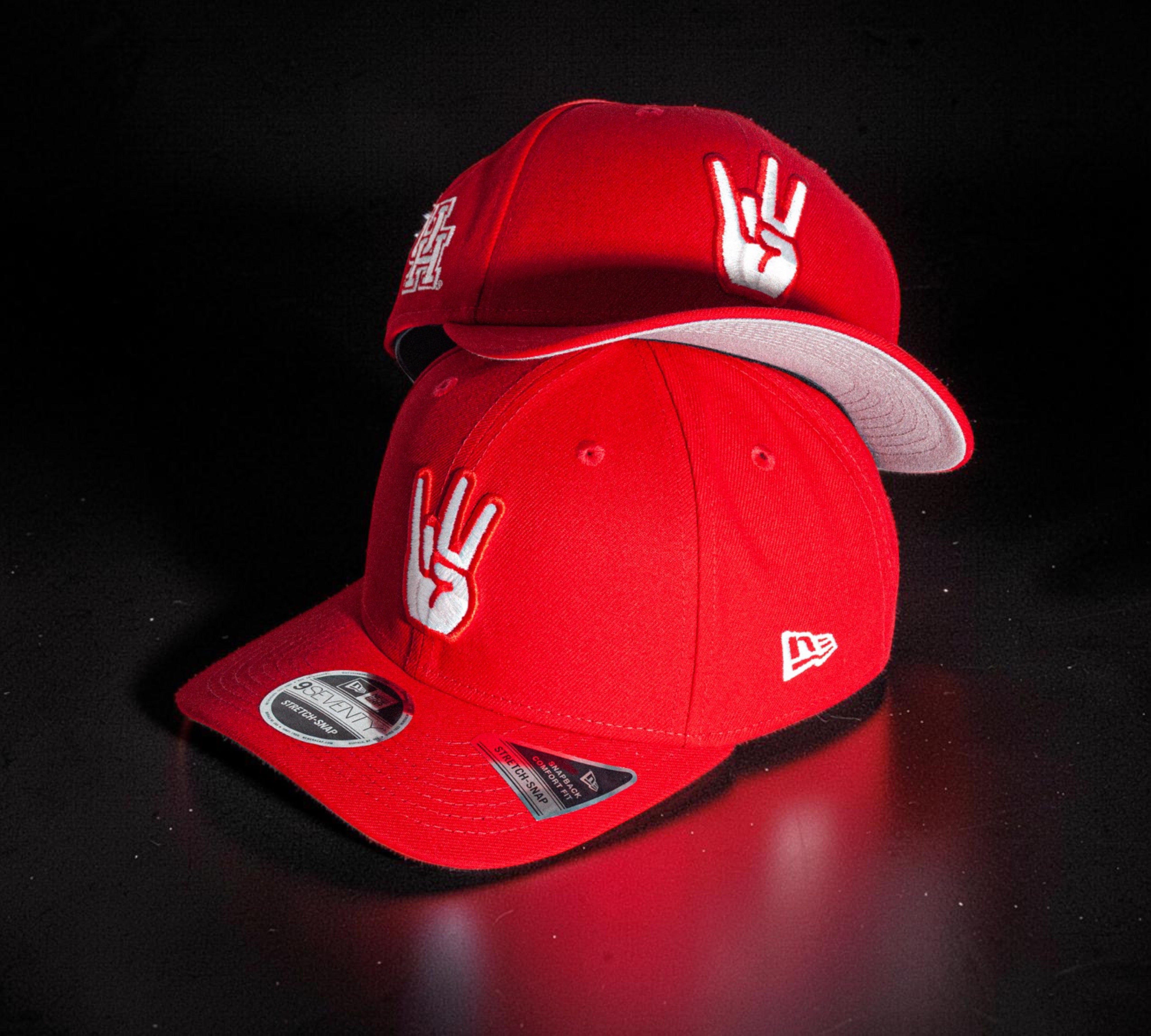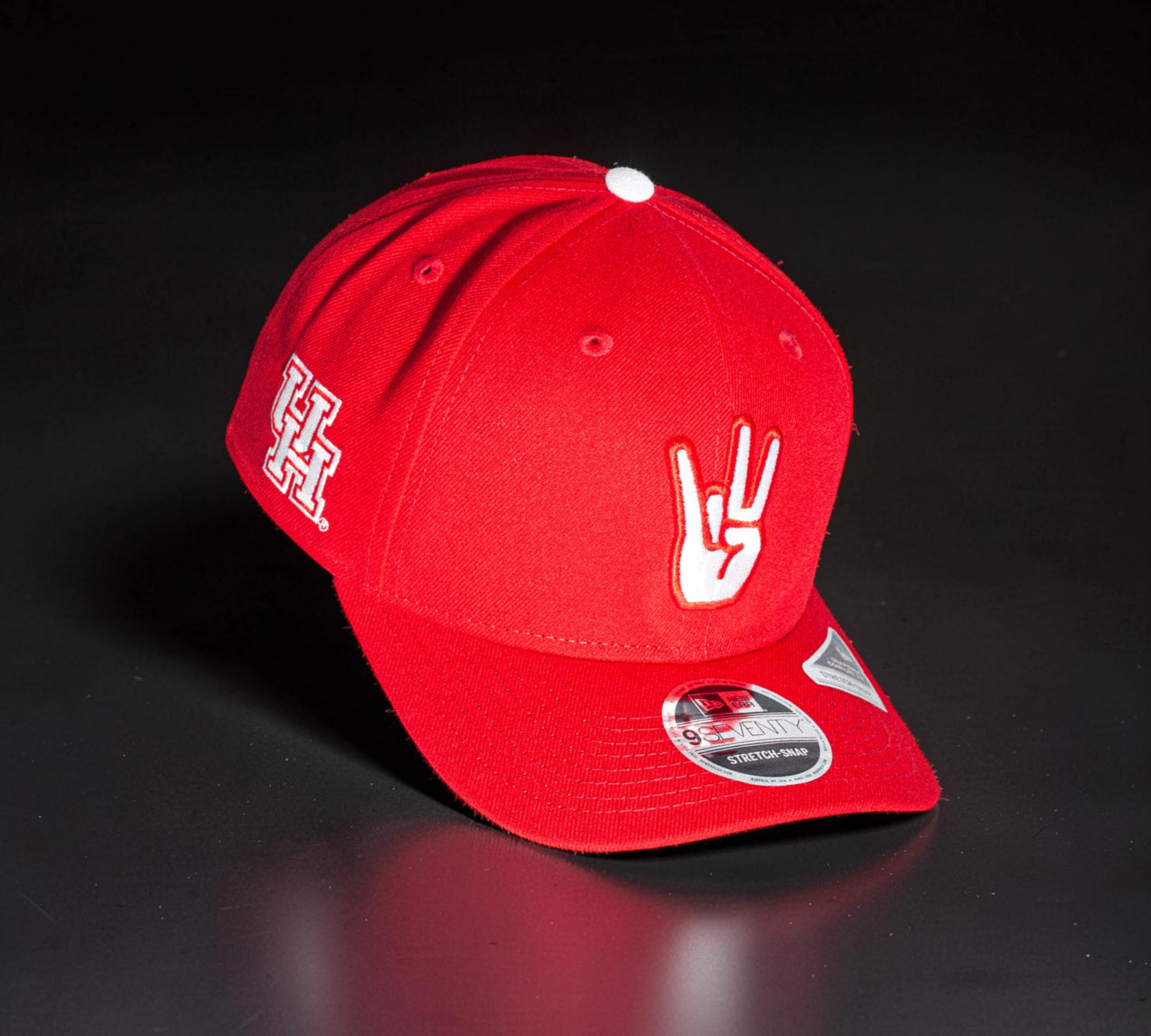 Eight One presents U of H Cougar Paw Red 970 Stretch Snap. This adjustable hat dons the bold yet classic, in your face, red and accented with white threading. The iconic Cougar Paw is embroidered on the front and the interlocking U of H logo sits proudly on the side. It comes complete with a grey undervisor.