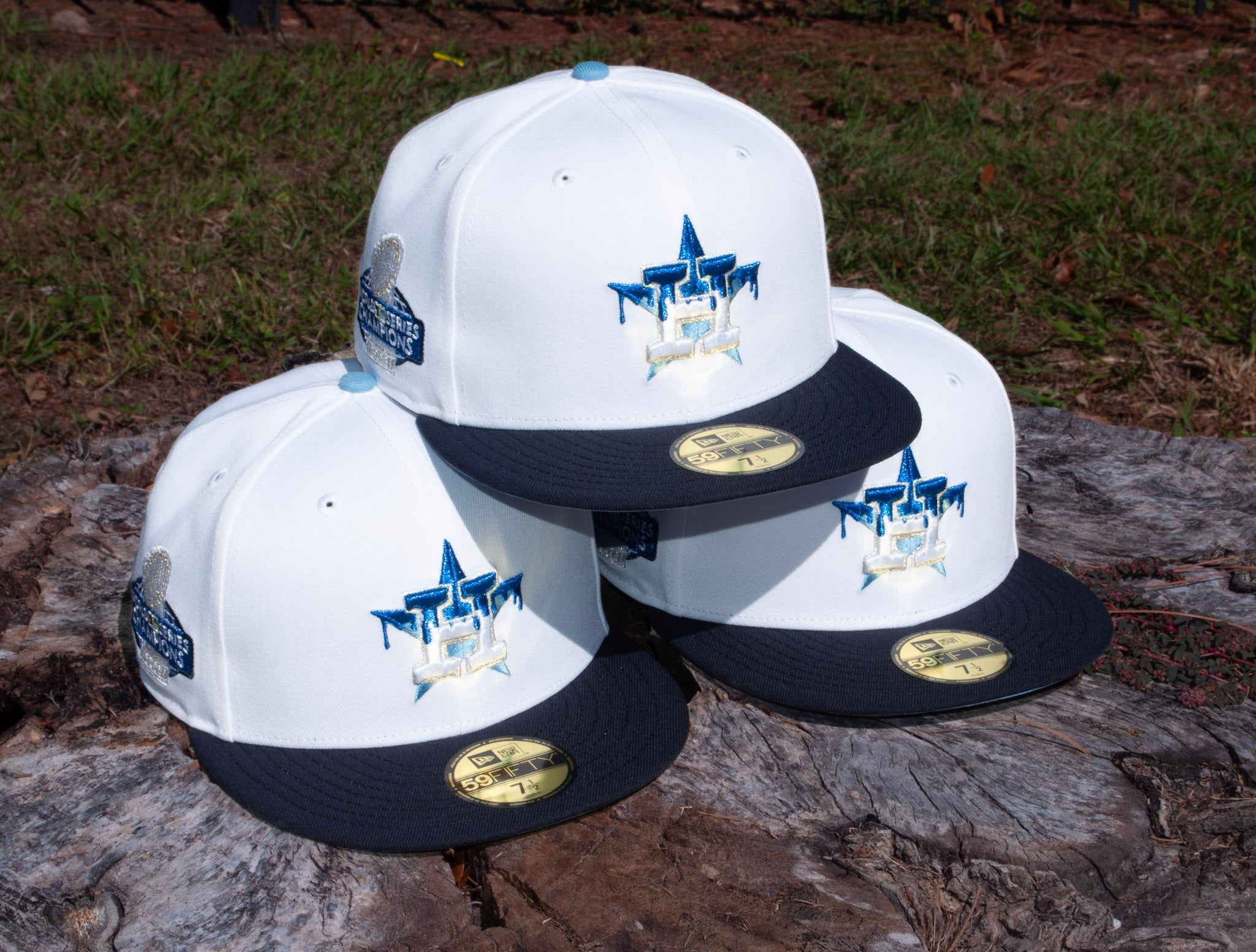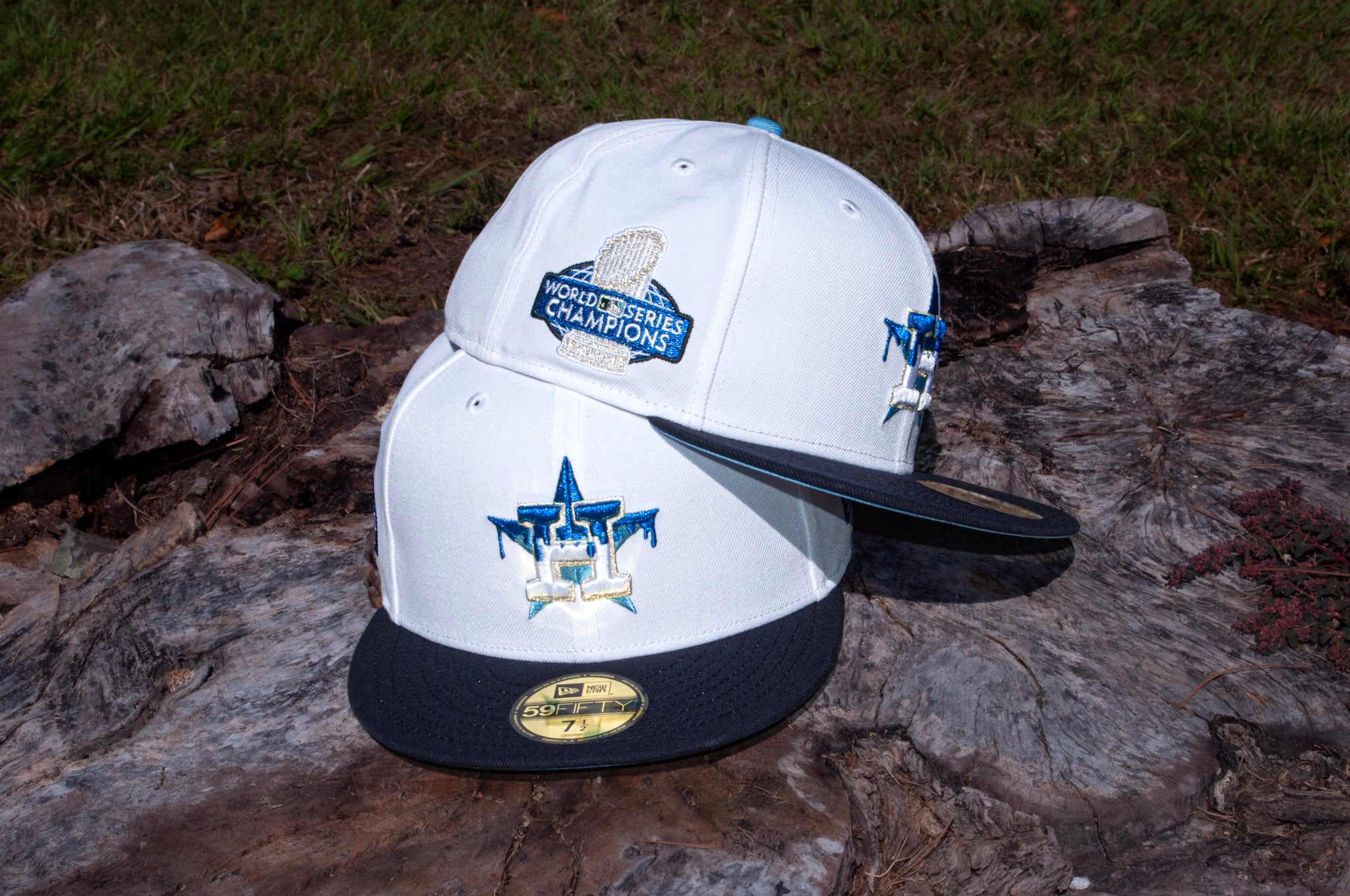 The chillest drop of the fall is here. This Ultra Blue Drip 59FIFTY hits with a crisp white crown, deep navy visor, and that iced-out Astros βHβ logo dripping in layered blues and metallic accents. Side patch comes correct with the 2022 World Series Champions hit in matching frosty tones.