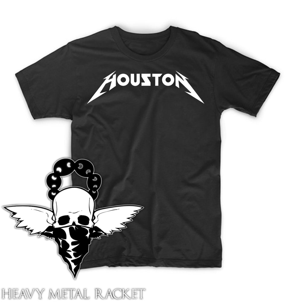 Turn up the volume on H-Town pride with the Heavy Metal Houston Tee — a bold mash-up of city culture and hard-rock attitude. This shirt takes inspiration from one of the greatest heavy metal bands of all time, reimagining the iconic logo style with a Houston twist.